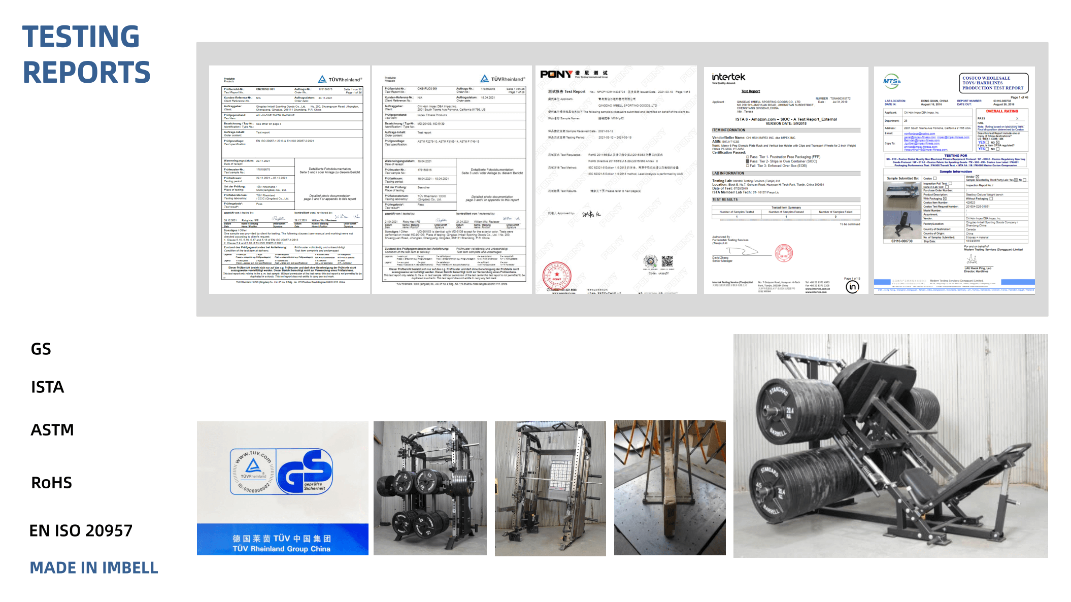 Certificate :ISO9001, ISO14001. Some products have passed EN957, GS, REACH, PAHs certification, National High-tech Enterprise, Shandong Gazelle Enterprise, Qingdao Enterprise Technology Center, Qingdao Industrial Design Center and other certificates.